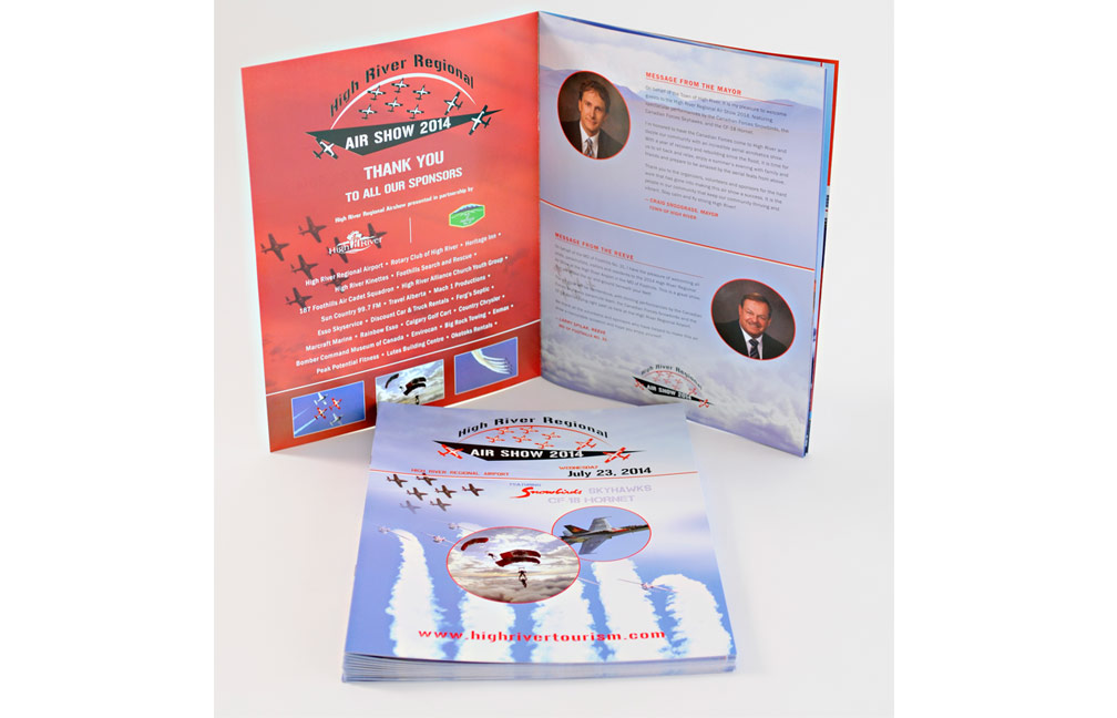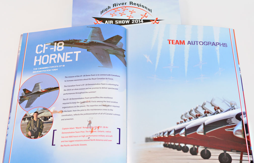 High River Regional Air Show LogoCreated brand identity and artwork for the High River Regional Air Show featuring the Canadian Snowbirds, Sky Hawks and CF-18 Hornet. The logo included 9 planes that represent the formation the Snowbirds typically fly in. The airshow had almost 6,000 visitors.